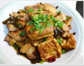 烧到酱汁剩半小碗时,就可以关火了~ - 9. 最后洒个葱花,酱烧老豆腐盛盘~上桌了!