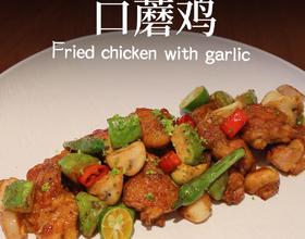 - 5. 在倒入青椒和口蘑翻拌均匀后,加入鸡肉翻炒均匀。