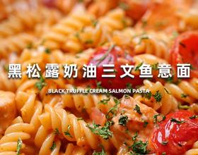 倒入淡奶油,放入煮好的意面和三文鱼块。