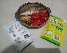 .鲈鱼鱼鳞和内脏洗净,身划数刀面反,生姜片切。西红柿净干切片,花椒去种。