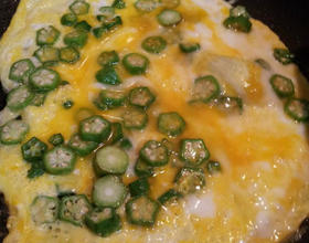 秋葵洗净切片,入锅中放入少许油,炒一下,加入少许的盐