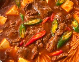 调一个辣酱,放入韩式辣酱一勺,两勺九菇鲜,半勺糖,一勺辣椒粉。