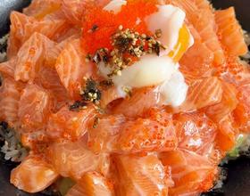 加入三文鱼,溫泉蛋、鱼籽,海苔碎