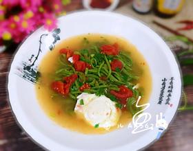 汤煮沸后,放入未熟透的荷包蛋一起煮