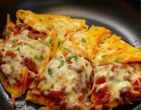 铺一层番茄肉酱,芝士碎,对折一下  - 7. 再撒一层芝士碎盖盖焖融化,盖盖焖至芝士融化,撒一把欧芹碎就好了。