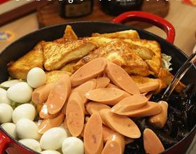 锅中放入白菜,豆腐,加入鹌鹑蛋,火腿和木耳,倒入400ml开水。