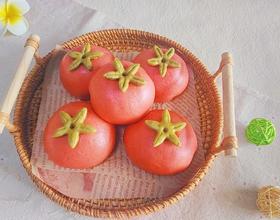 红色面团分成一个个小剂子,擀成边缘薄中间厚的面皮加入奶黄馅
