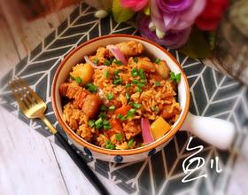 五花肉里面的油脂太多,要煎出来一些,要不然焖饭做出来会油腻
