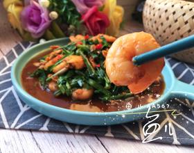 虾仁翻炒片刻,倒入料汁