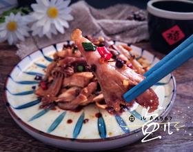 - 13. 鸡腿捞出,沥干汤汁,晾温,去骨撕成条