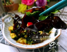 - 12. 黄瓜木耳放入碗中,倒入料汁