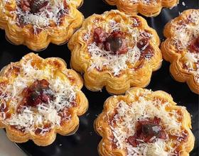 蛋挞皮放烤箱里,倒入黑松露蛋挞液8分满