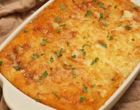 - 2. 再撒些干酪粉,放上一片黄油。热牛奶分多次加入,不停搅拌。