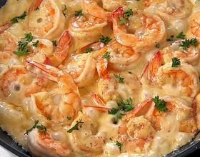 倒入虾仁煮至浓稠,撒上欧芹碎即可。