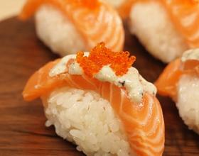 淋上一些鱼籽,三文鱼寿司就完成啦!