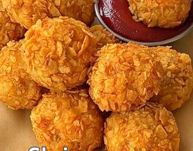 加一层淀粉,一层蛋液,一层薯片碎。