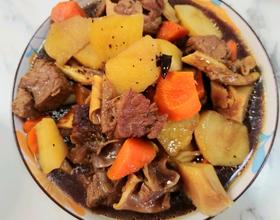 牛腩稍微切小些,易煮烂。下次可以换高压锅做,时间可以缩短一半。