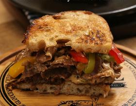 加入彩椒搅拌均匀,盖上两片芝士,等待芝士融化。