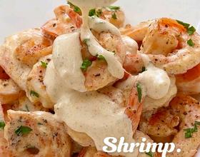 倒入煎好的虾仁。小火煮至浓稠,撒欧芹碎。