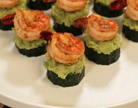 将黄瓜,牛油果酱和黑虎虾仁组合起来即可。