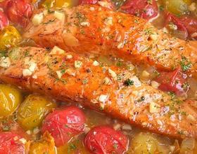 油热倒入洋葱炒香,倒入小番茄炒软,加入蒜末炒香。