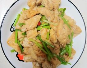 准备食材,豆泡切半,芹菜切段,小米辣和蒜头切碎