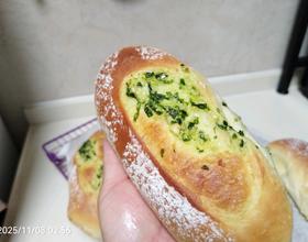 - 16. 用刀片快准狠的切出面包口,挤上蒜香酱