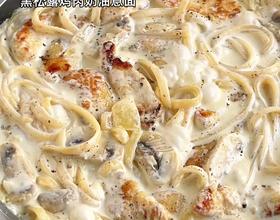 倒入牛奶,淡奶油,黑胡椒碎,盐,黑松露酱。