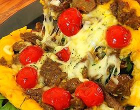 - 7. 蛋液往中间推。撒上芝士碎小火焖至芝士融化。