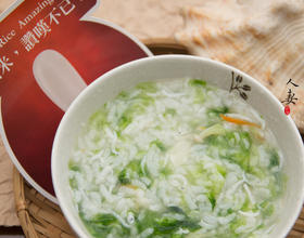 小火煮到米粒开花成粥状再次滚后再加入新鲜海藻及适量的盐及香油即可关火,盛碗取用。