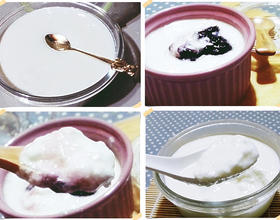 鲜奶跟优酪乳的比例就是一比三~这个比例是我试过最好的比例~酸奶在电锅里保温时间越久会越酸喔~冷藏可以食用约5天.留下约2大匙的自制酸奶当菌种再次加入鲜奶就可以让家里有源源不绝的自制健康无糖酸奶啰~~