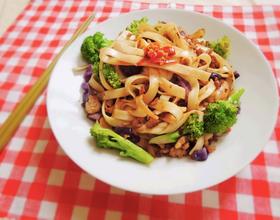 花椰菜与面条进锅,加入酱油 盐 糖 胡椒 拌炒数分钟即可