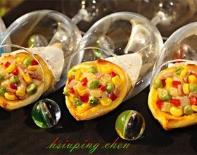 - 12. 将马铃薯泥与吐司丁拌匀,塞入吐司卷里抚平,再将玉米蔬果摆置马铃薯泥上即可完成,缤纷玉米薯泥甜筒卷
