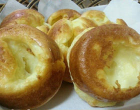 *牛奶跟鸡蛋如放冰箱冷藏请放回室温后再做操作....*烤盘先预热会更能帮助膨胀....*烘烤时间要够,太早拿出炉会因为没有烤熟而塌,所以时间需斟酌一下..*如喜欢甜点建议烤好后沾果酱或淋上炼乳...