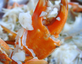 螃蟹先将蟹钳掰掉,用工具将蟹钳外壳夹裂(此步骤是为了吃蟹钳的时候方便,要不牙咬断了也咬不开)。