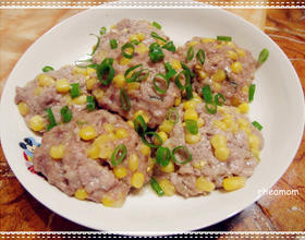 - 1. 玉米罐头需要3匙。 2.猪绞肉250g。 3.青葱切末。 4.姜片切末。