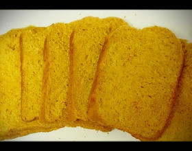 - 1. 胡萝卜削皮后直接磨成泥,面包机容器内装好做面包的叶片,将材料依序放入,酵母粉投入专用糟,选择制作面包面团的选项。