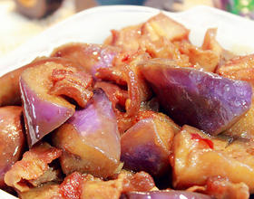 *这次我用的酱是泰式甜辣酱!真是意外的惊喜,甜甜辣辣的茄子好好吃*嗜辣的可以使用郫县豆瓣酱、小米椒实践后的经验总结:1、茄子切块后,要用添加了几滴醋(或柠檬汁)的水中浸泡,一方面吸足水份;还可以避免氧化变黑;2、炒茄子用到的油是用五花肉逼出的猪油,香!3、炒茄子的过程中,不要添加一滴水,不断的翻炒至茄子变软!软糯口感的茄子就是这么炒出来的……