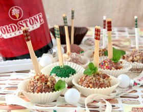 - 8. 每颗冰淇淋球上插上小叉或棒棒糖棍。
