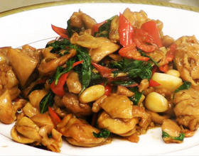 - 6. 加入九层塔拌炒至出香味,再加入辣椒,持续收汤汁收到全干没有水份后,盛盘即可