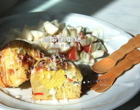 所以这道咸蛋糕份外地够味好吃喔!!! - 5. 送进已事先预热好的烤箱中