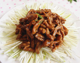 - 10. 放入肉丝,快速翻炒均匀,使肉丝均匀挂上酱汁即可起锅,倒入放了葱丝的盘中即可。