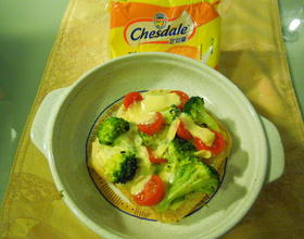 烤箱预热后,以摄氏140度烤至起司融化(约3分钟)即可出炉。