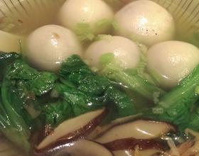- 5. 高汤:??锅内放入二大匙油将香菇跟虾米爆香,放入高汤或鸡汤块,熬煮10分钟。??另起一锅干净的水,滚了之后放入汤圆煮到汤圆浮起之后捞起来放入高汤里再煮一下。??最后放入油葱酥和茼蒿跟芹菜末调味后洒些胡椒粉就完成啰!
