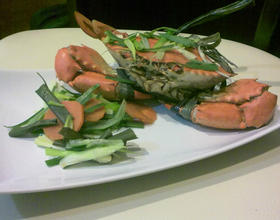 大家可以用喝完的玻璃啤酒瓶来做为吃螃蟹的工具,真的非常方便,蟹螯的肉可以很完整的取下喔~由于第一次尝试活公蟹料理,蟹壳外并没有清洗完全,汤汁部分便不食用。若购买的螃蟹腥味较重,建议搭配姜末、醋及酱油一併食用,*搭配蟹甜又是另一种风味~