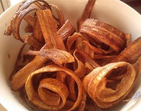 1、 火不能太大,不然很容易焦掉变苦2、 一次不要炸太多,一次2.3根慢慢炸,不然会来不及捞起3、 稍微变色后就可以起锅,剩馀的油温还会继续留在牛蒡上,放凉沥干油份就会变酥脆了4、 这道菜很适合练耐心