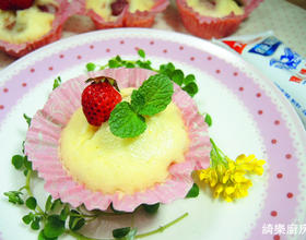 把芙蓉糕液舀进杯子烘焙纸里面,8分满