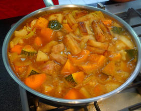 将所有食材放入锅中煮沸就是美味的咖哩火锅。
