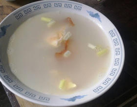 先把蛋煎成金黄色后(一定要煎的酥酥的喔!!)加入水,水滚成乳白色后放入盐、《康宝》鲜味炒手、青葱段后就OK了!!