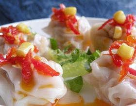 按照图上1.2.3.4.步骤把内馅包入馄饨里